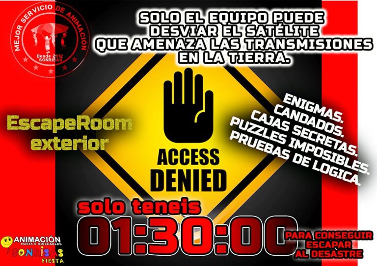 Pero en esta ocasión la hemos creado para hacerla al exterior, no se trata de escapar de un sitio , se trata de escapar del propio juego, es completar una misión que los participante tienen que resolver en un tiempo definido y además todo ello ambientado con un hilo conductor que hace que los participantes se sientan inmersos en resolver el objetivo para conseguir la misión y escapar.